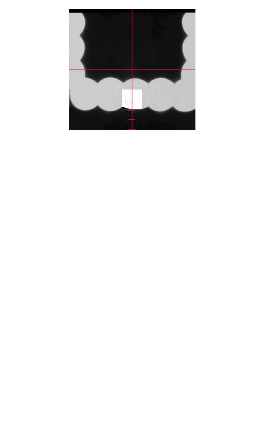 Machine Calibration Camera 。 5. 利用 Teaching Bo 移动 Mirror 轴,使该 Camera 的 LED 中央下端位于 Vision Monitor 十字线下端的第四个刻度。 FOV 25mm Fly Camera 时 如果是 FOV 25mm Fly Camera ,则把 LED 下端对准 Vision Monitor 下端刻 个刻度。 度的第四 14-17