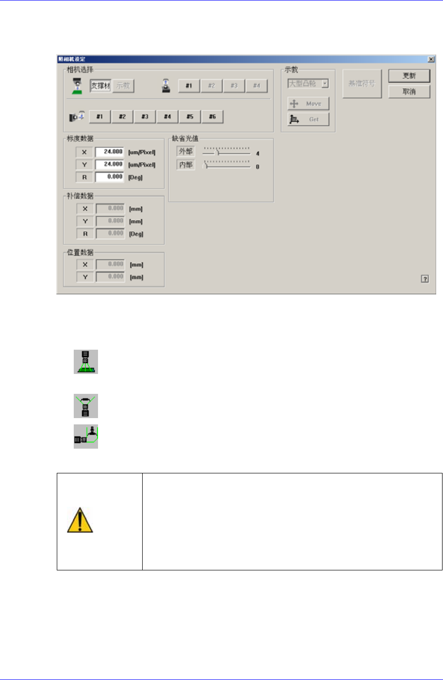 设定有关摄象机校准(照相机校正)的数据。其数据可以直接设定,也可以利