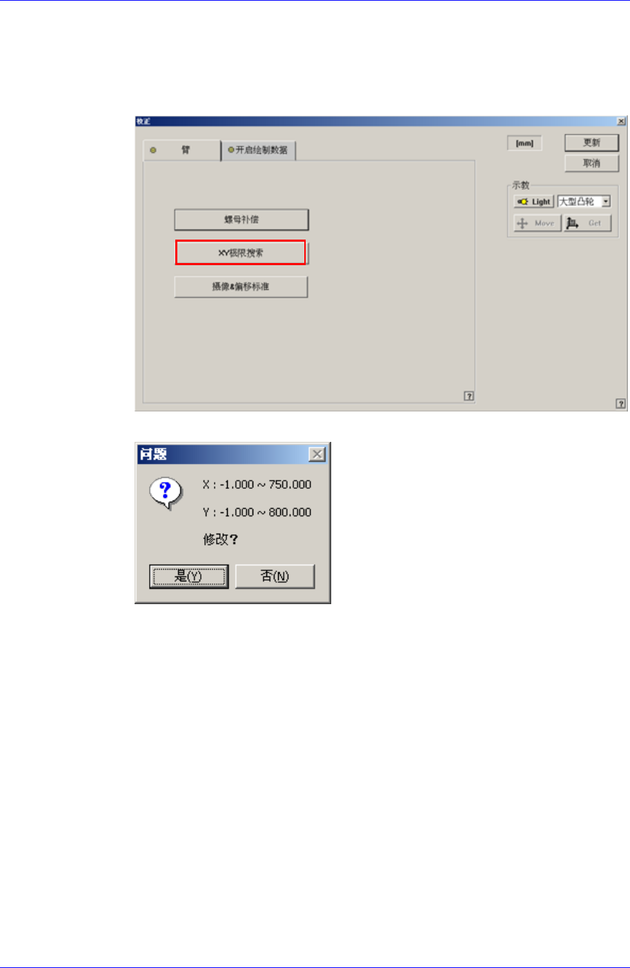 1. 点击<X-Y Axis Limit Search> 按钮, Head Assembly自动向 X轴及 Y轴方