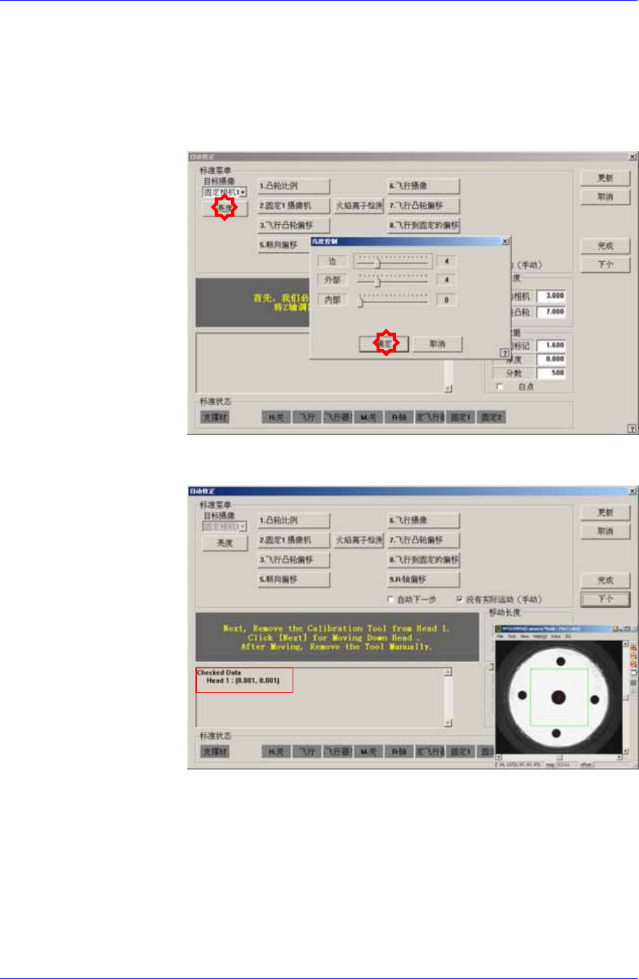 示的Calibration Tool上的Ficucial Mark明显为止调整照明亮度后点