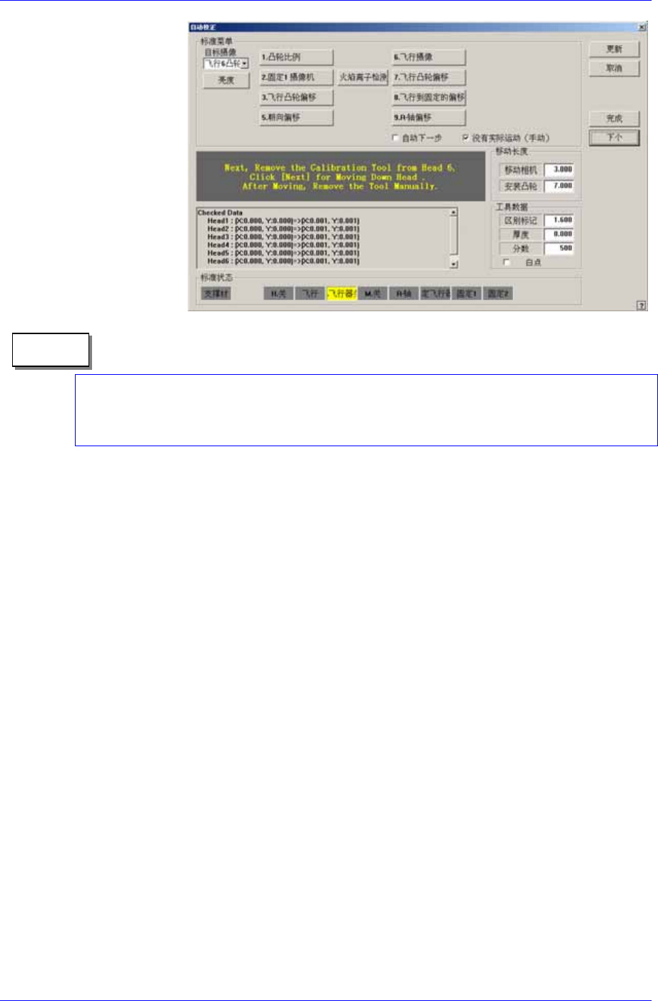 消息。在磁头1号的吸嘴支架上手动安装Calibration Tool后点击