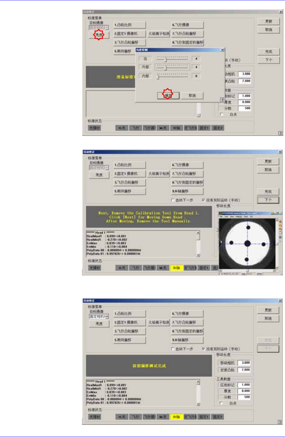 9. 正常结束对所有磁头的校正,则显示如下结果值。