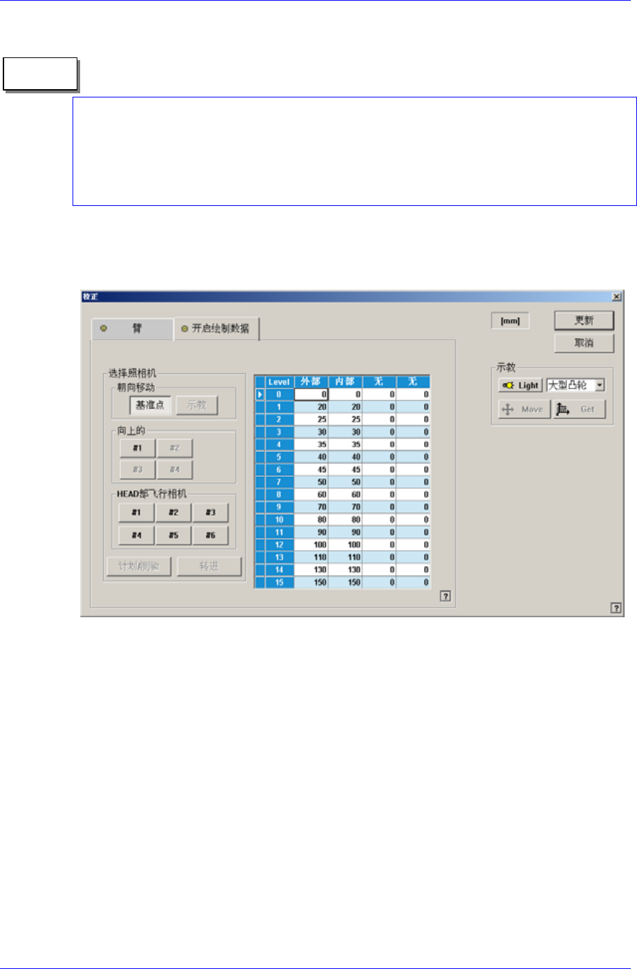 Fiducial, Teaching Camera时: Inner 照明输入成256阶段值。 (Head Move