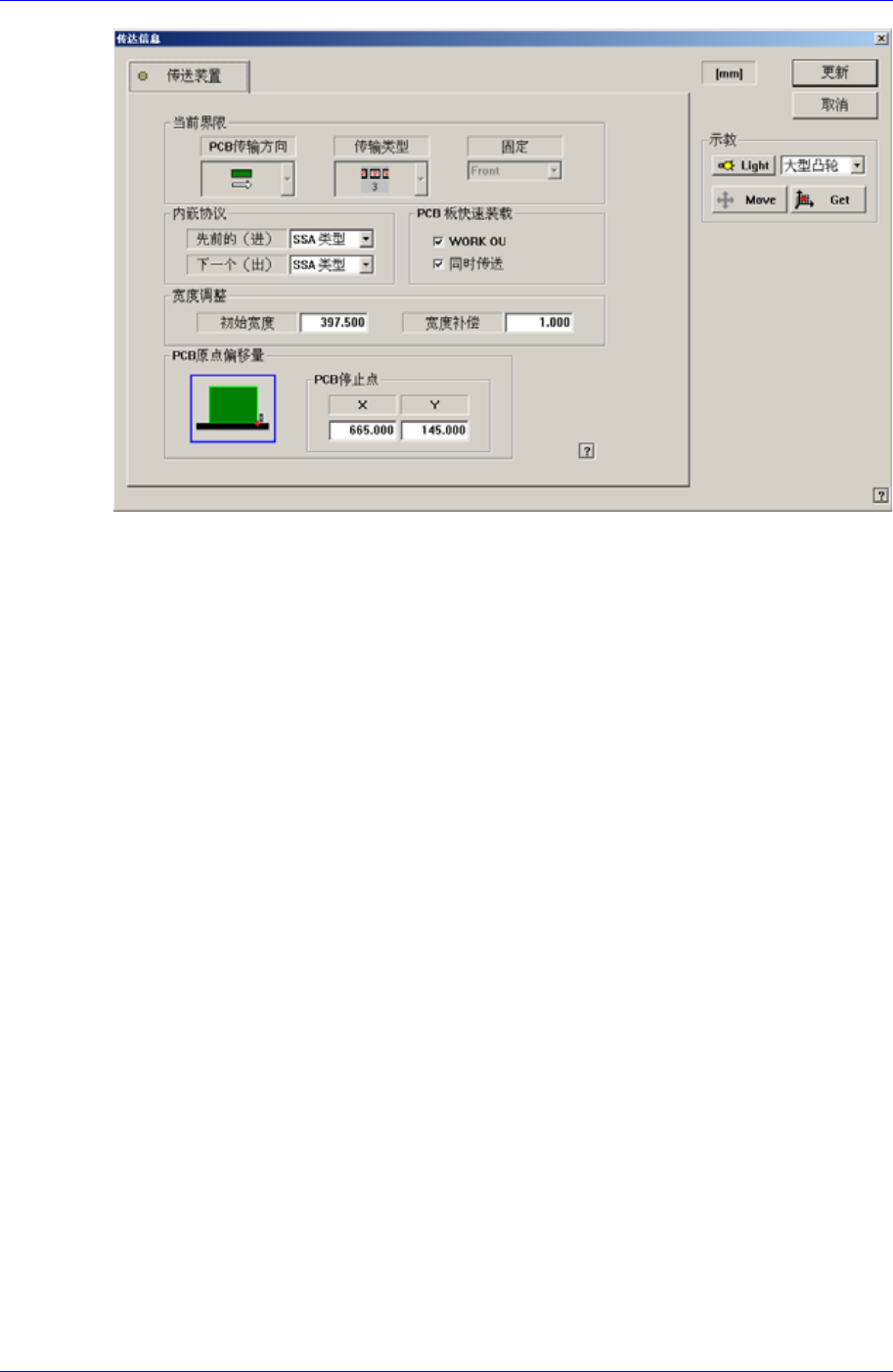 1. Board对话框中对准输送机宽度,点击 <PCB In> 按钮把任意的Board投