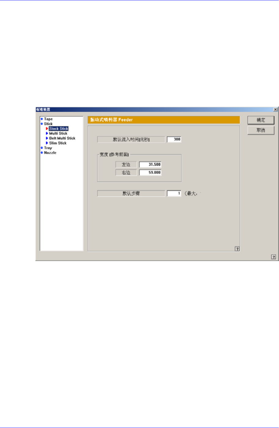 以下画面是在目录框中选择 “Stick”时。 设定有关管式喂料器的数据。