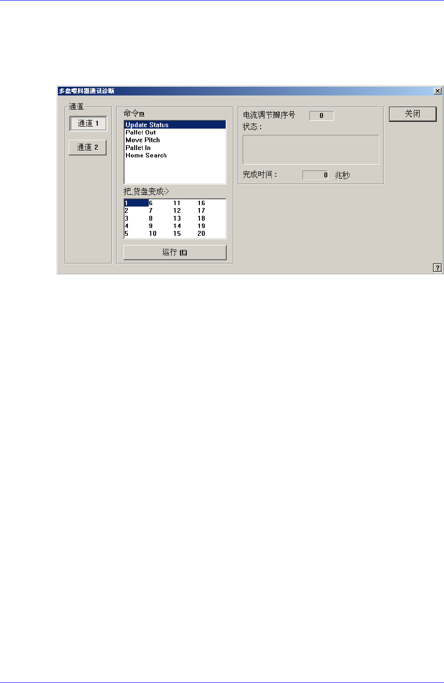 16-11. “诊断: 多盘喂料器通讯诊断” 对话框