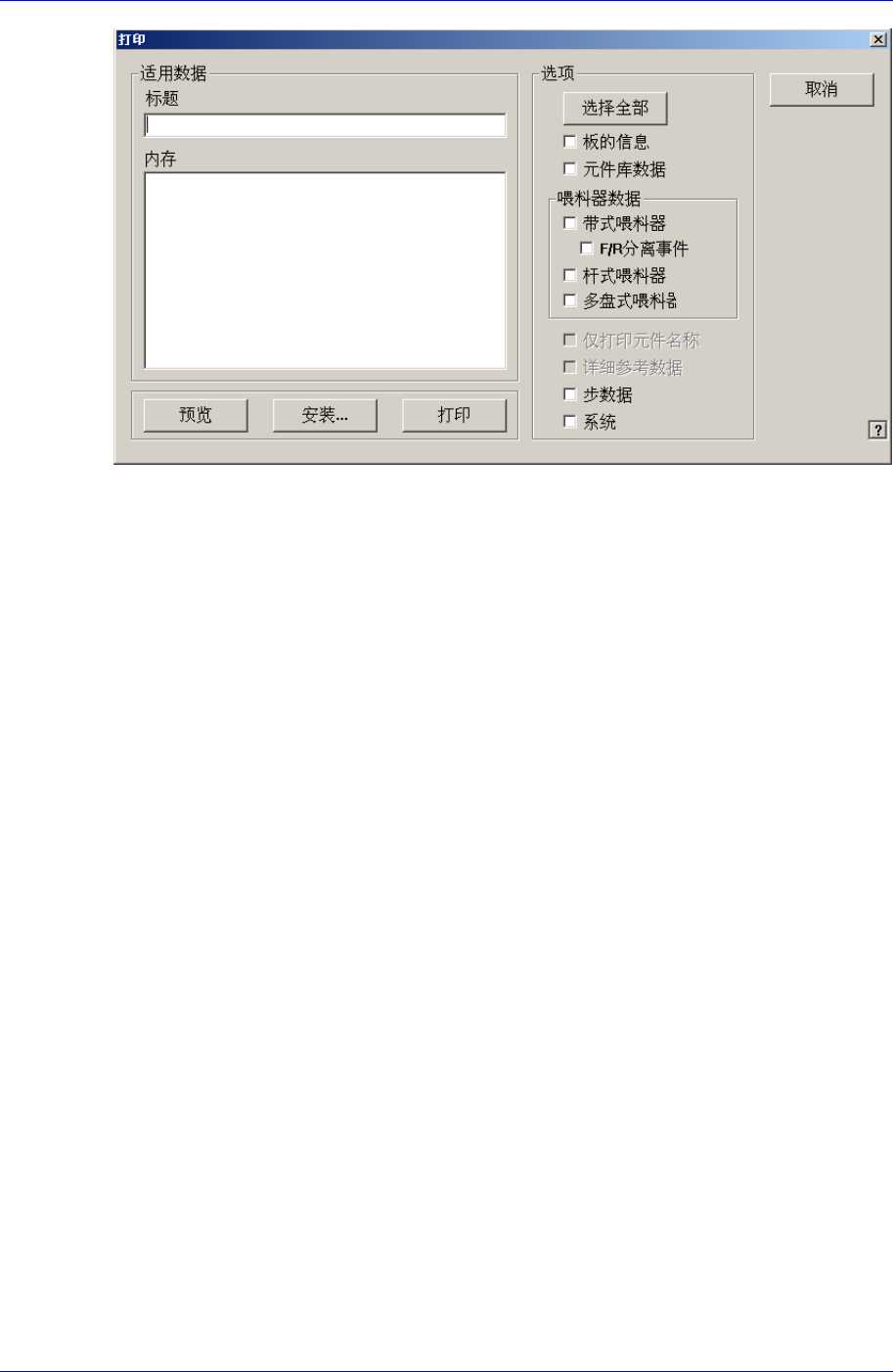 选择将要打印的喂料器的信息。