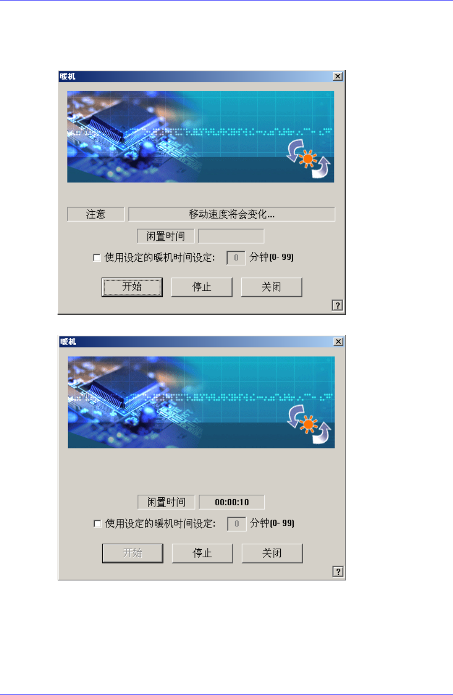 框上显示所经过时间(Elapsed Time)。再次单击时结束<预热> 动作并关闭