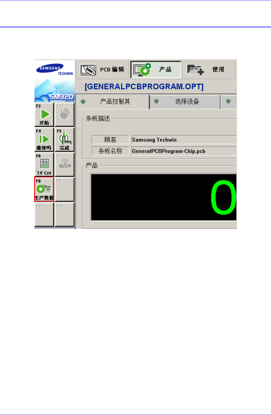 Samsung Component Placer SM320 Administrator ’ Guide 18-2 18.1.1. Production 图 18-1. “ Production ” TA P 对话框 <Power On T ime> 表示设备输入电源后,到现在经 过的时间。 < R u n Ti m e > Ti m e 表示 Mount, W ait, Stop 时间总合。 <…