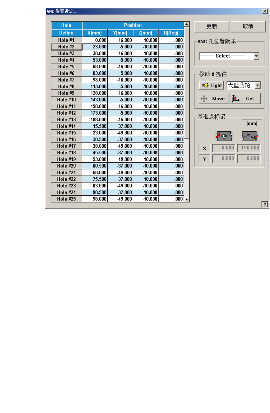 Samsung Component Placer SM320 Administrator ’ s Guide <Light> 按钮 使用的 Fiducial Camera 照明。详细事项请参照 “ 7. ata (7-10 页 )” 。 想要移动到指定位置的对象, 或者用于 对象。 时,点击 <Move> 按钮 之前必须用鼠标点击 应的孔。 < > 按钮 选择的对象为基准获取 X, Y 击 &…