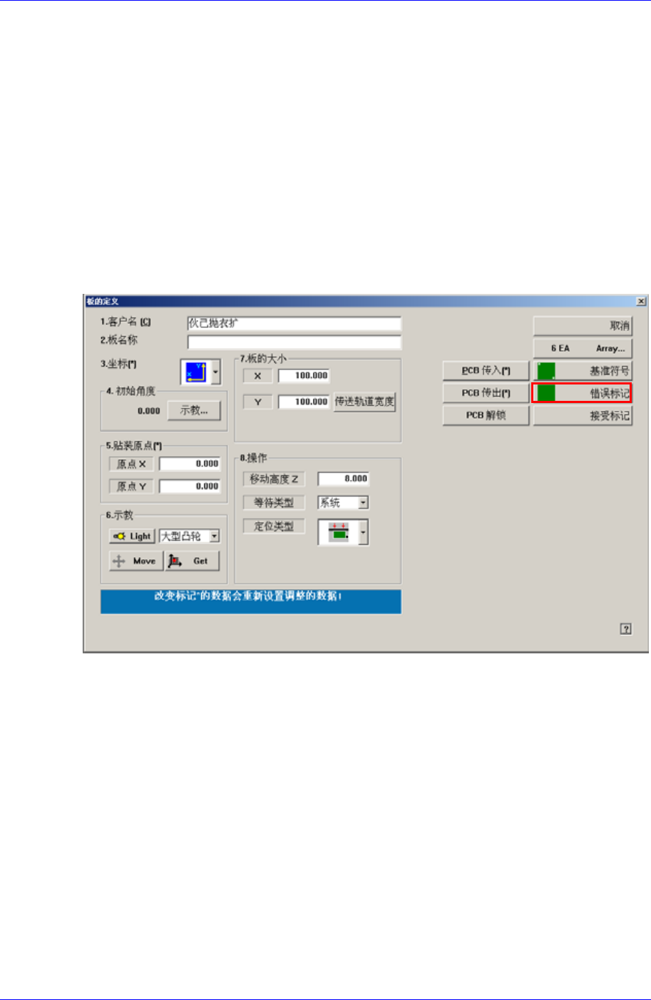 不进 钮时,显示以下编辑 “坏板标记”数据的对话框。