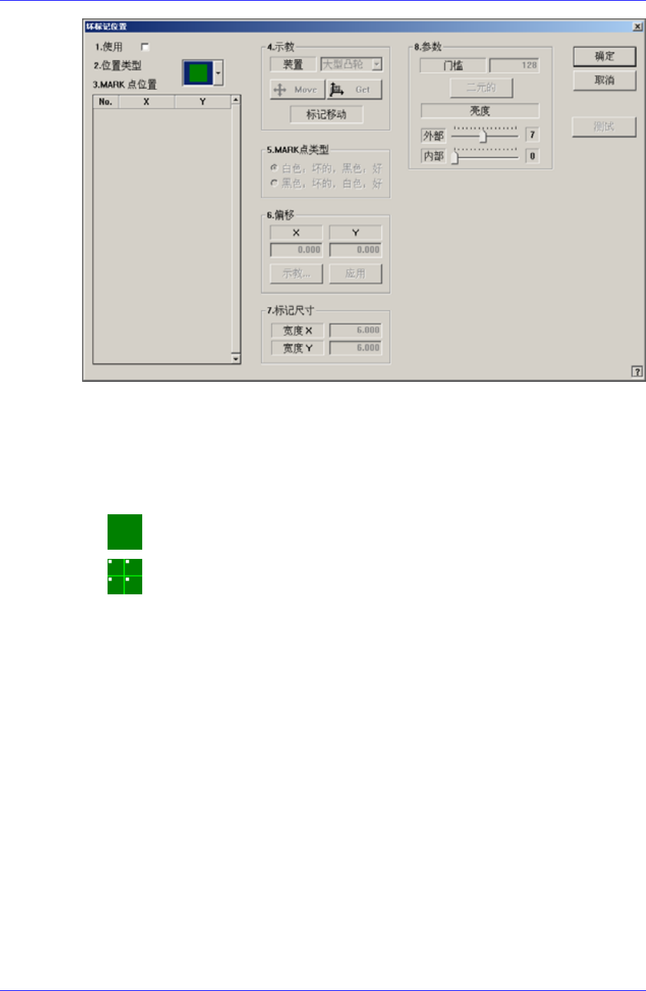 上述画面显示的 Fiducial Mark位置表示 Scan Test执行后查出的实际MMI识别