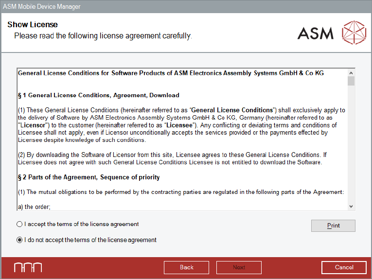 ► Read the license agreement of ASM Assembly Systems GmbH & Co. KG relating to use of this