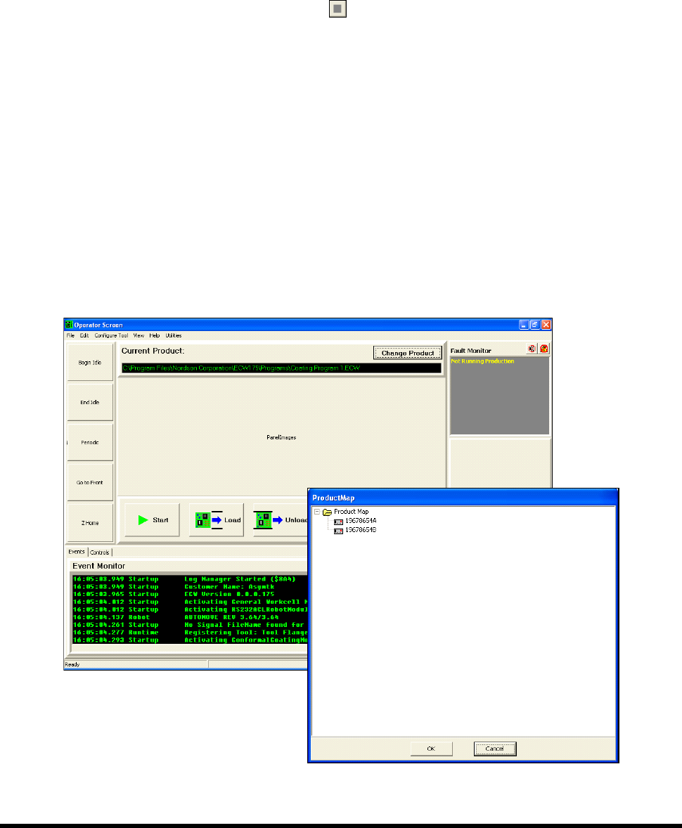当系统未运行涂敷程序时,您可通过 Load Product 和 Unload Product 按键实现人工控制传