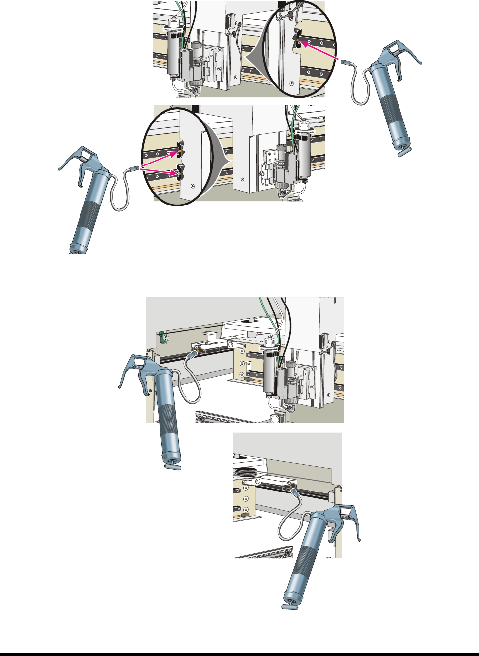 5. 四个 X-梁线性轴承车和四个 Y-轨道线性轴承车上(图 4-8 和 图 4-9).,每一个均需安装油脂转接头。