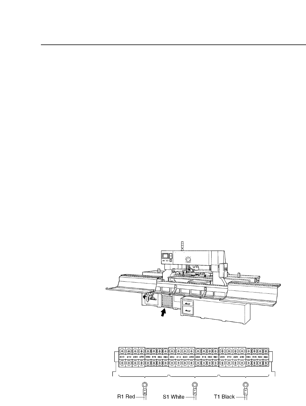 Chapter 2 Setting Up the CP IV -3 Run the power supply cable through the opening at the bottom of the machine on the left-hand side (when viewing from the fr ont) as shown in figure 2-7. Connect the thr ee phase cables a…
