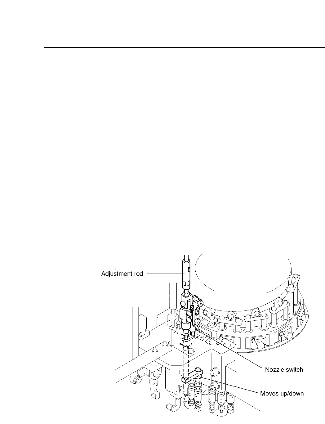 The adjustment rod, besides driving the nozzle's vertical strokes,
