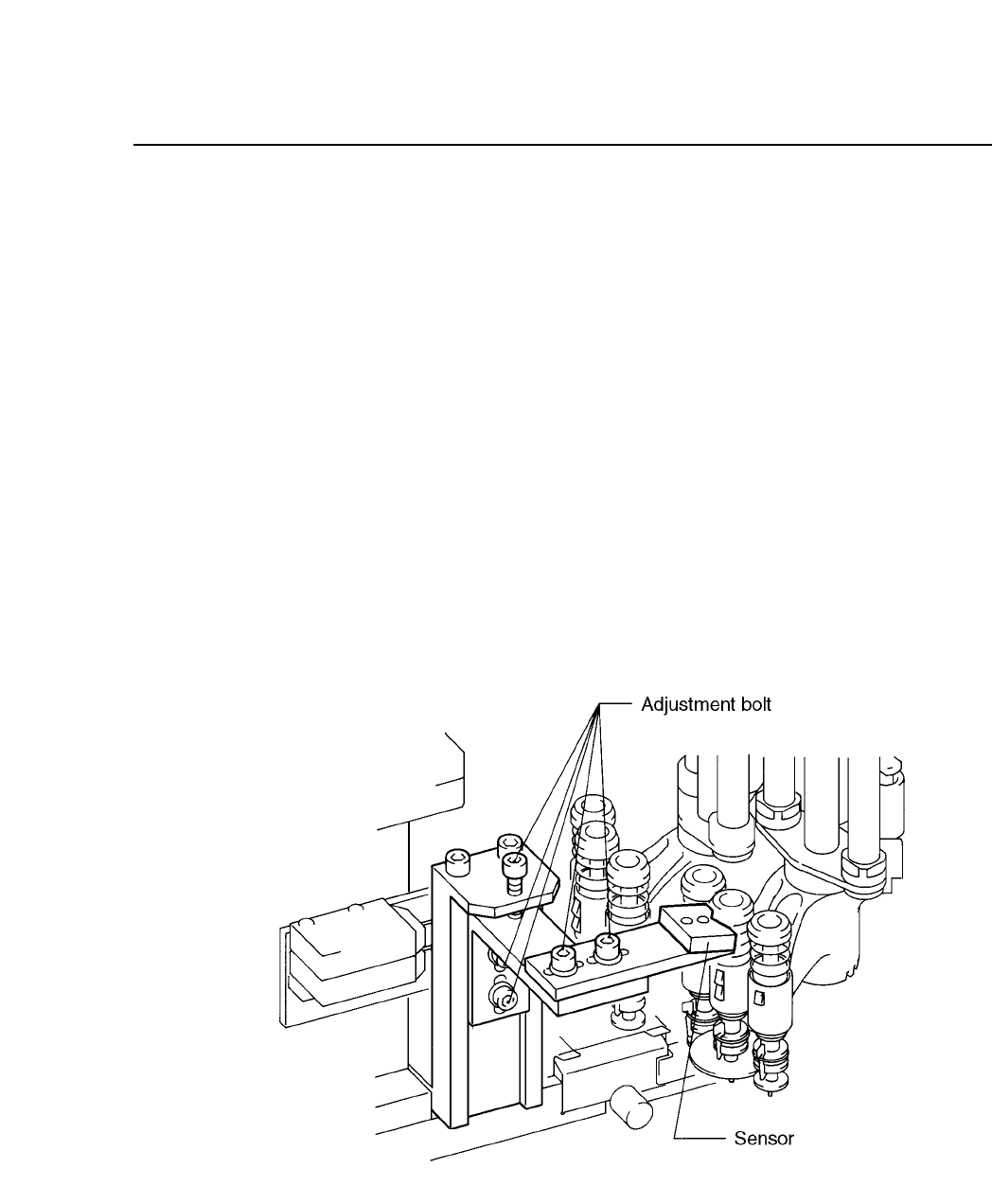 Chapter 5 The T welve Stations Follow the procedur e below to adjust the str oke of the nozzle. (1) W ith the cam angle set to 0°, adjust the securing bracket so that the sensor will touch the nozzle clutch’s tapered sur…
