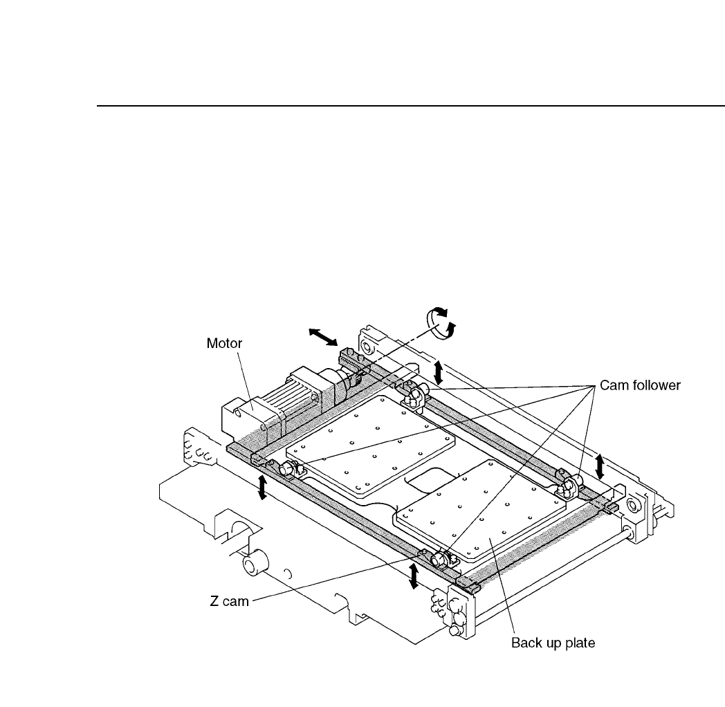 cams. As the LM guides move, the cam followers slide over the Z cam and this