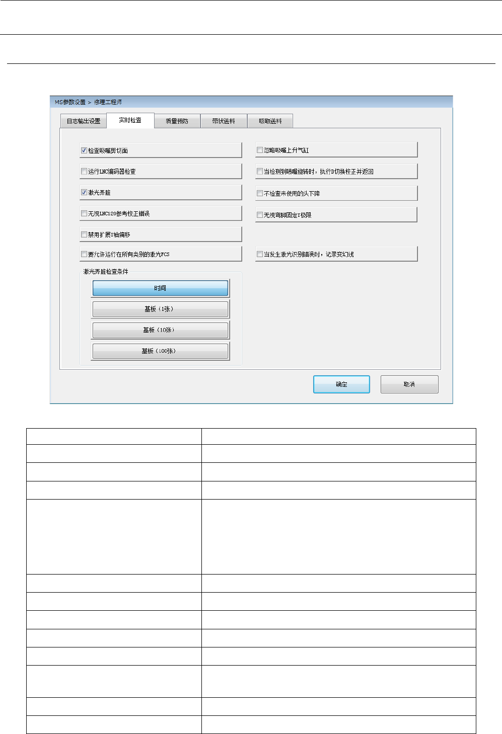 激光弄脏检查条件