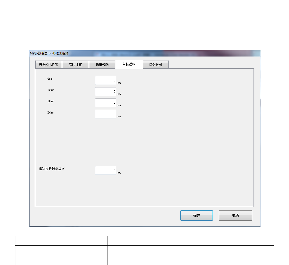 带状送料时间高度校正 每一种送料器设置带状送料时间