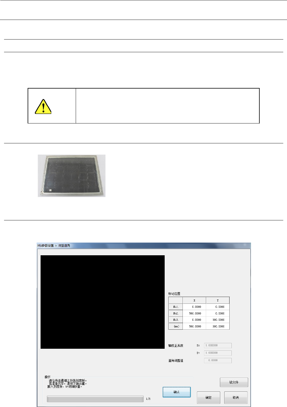 获得XY轴伸缩方向的校正系数。调整合并的XY轴的与基板标记的直角。