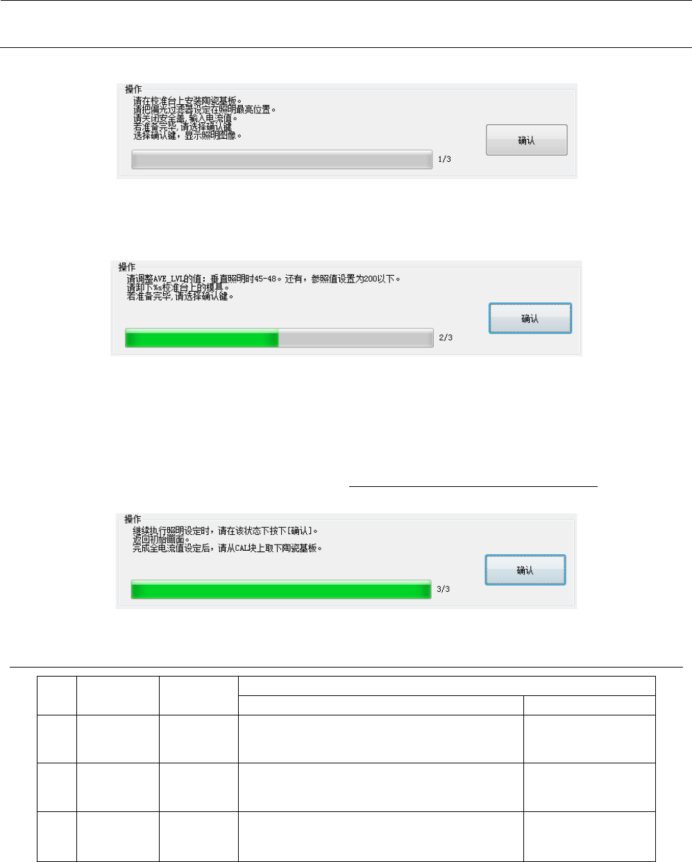如果光量的水平在上述范围内,请从校准台上拆下模具,按确认按钮。