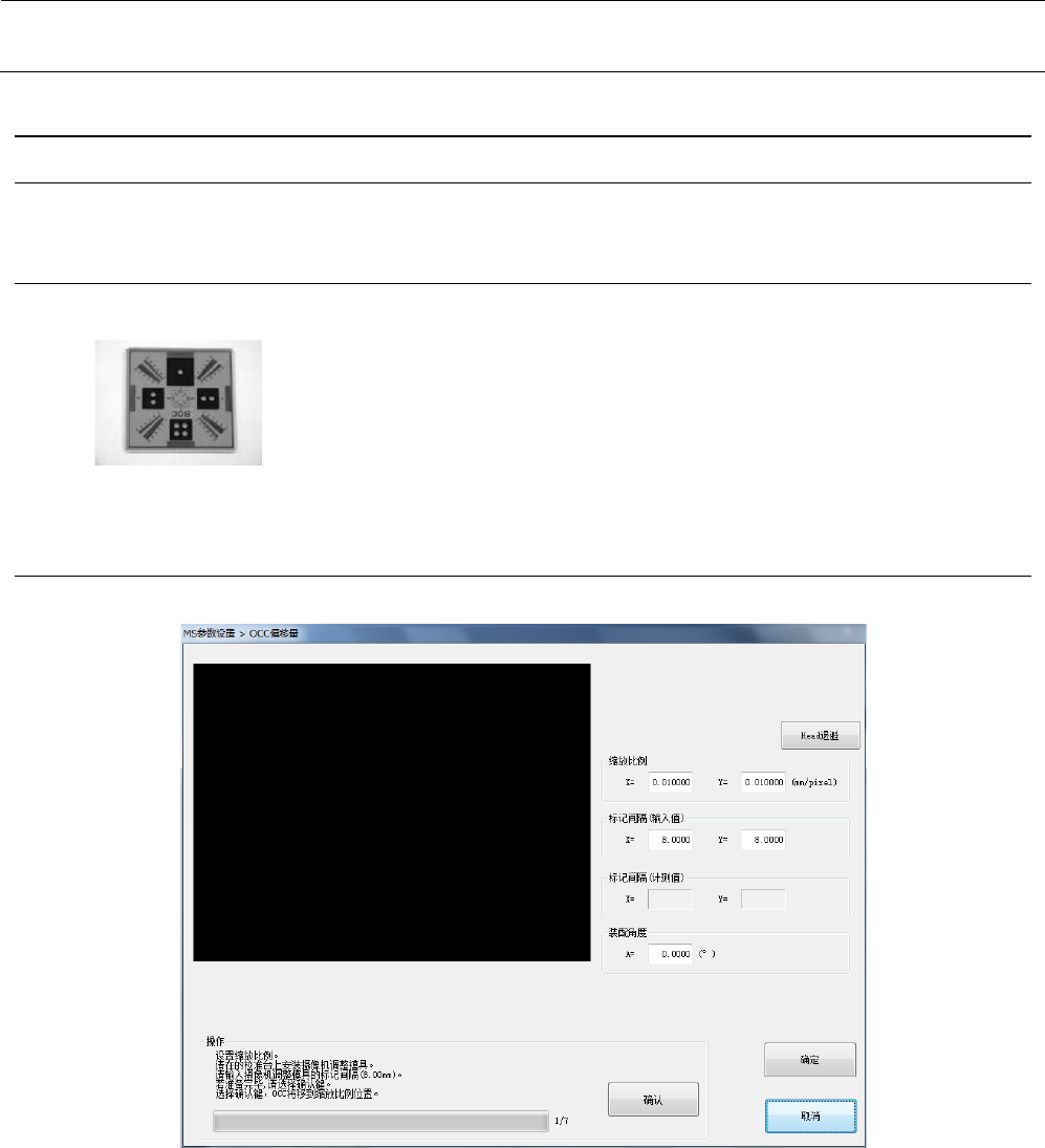 MS 参数 4-3 OCC 偏移量 4-3- 1 功能 取得 OCC 的缩放比 例以及装配角度。 4-3- 2 使用模具 • 相机调整工具 (E2106998000 ) • 白纸 60mm 正方形中央开 直径 2m m 左右小 孔的白纸 4-3- 3 操作 从菜单中选择“基座 参数 ”-“ OCC 偏移量”后,会 显示以下对话框。 4-5