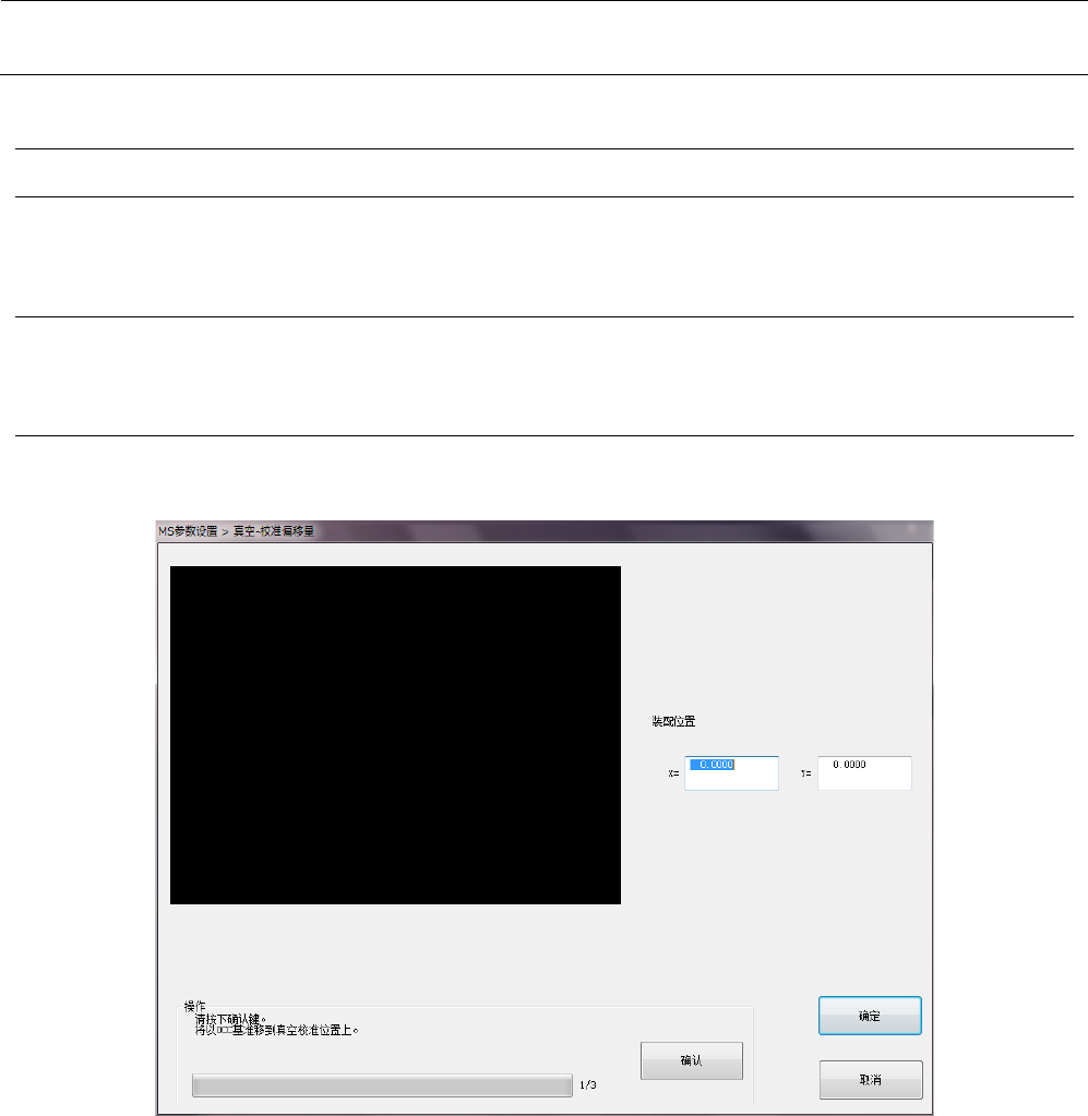 MS 参数 7-2 VAC - CAL 偏移量(真空 校准偏移量) 7-2- 1 功能 进行 VAC - C AL (真 空校准)装配位置 的设置。 7-2- 2 使用模具 本项目中不使用模具 。 7-2- 3 操作 从菜单中选择“单元 参数”-“真空 - 校准偏移量”后 ,会显示以下对话框 。 7-3