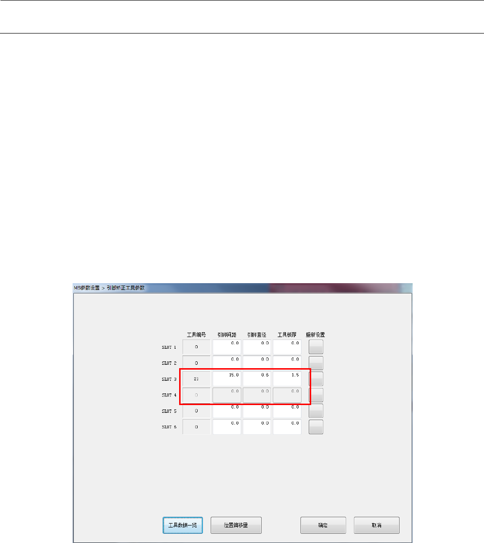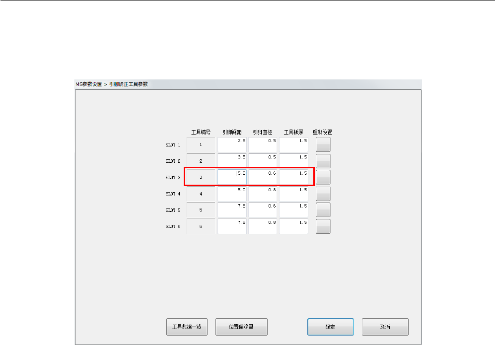 选择“单元参数”-“引脚矫正工具参数”-“位置偏移量”后,会显示以下引脚矫正工具位置偏移量