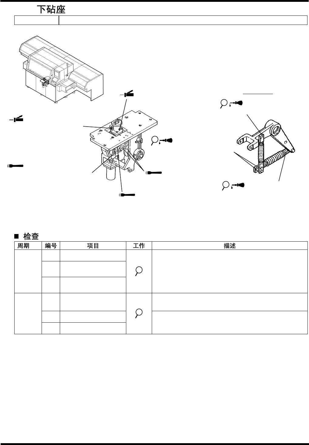AVK3 维修 手册 6.2 检查 和润滑 D77M CC-80-02 0-A0 6.2-21 6.2.12 装置 编号: 1087101 000 每天 a. 手动 旋转轮 确保 齿轮旋转 平稳。 b. 凸轮 紧固螺 栓 确保 凸轮紧固 螺栓没 有松动。 每周 c. 蜗轮 减速器 确保 蜗轮减速 器中的 润滑剂不 泄漏。 每周 1. 凸轮 表面 位置 :凸轮 表面。 每三 个 月 2. 齿轮 单元 0.5cm 3 位置 :齿轮 啮合部…