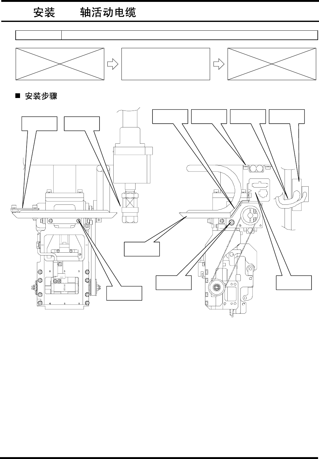 AVK3 维修 手册 7.4 安装 WH 轴活 动电缆 D77M CC-83-EF 0-B0 7.4-2 1 1. 1. 将活动电缆连接器连接到连机器后侧 ( a ) 锁定解除驱动器 D- 型连接器( -XW HE 1 )并重新连接连接器(电机侧)。 ( b ) 锁定解除电机连接器( -XW HM1 )并重新连接连接器(电机侧)。 2 2. 1. 连接将活动电缆连接从机器后侧。 驱动 器侧连接 器( -XW HM1 ) 活动 电缆 D…