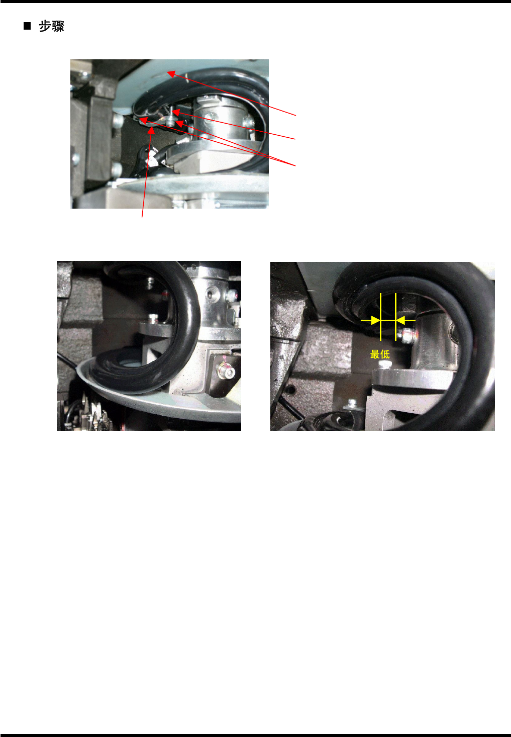 AVK3 维修 手册 7.4 安装 WH 轴活 动电缆 D77M CC-83-EF 0-B0 7.4-4 4 保持活动电缆在挡块和支架之间,并用内六角扳手 M4 固定螺栓( 2 件)。 = 检查重点 = 卡圈 挡块 倒角 螺栓( 2 件) 支架 电缆应放置在支撑板上。 电缆与旋转中的轴之间应保持 10mm 以上的距 离。 50mm