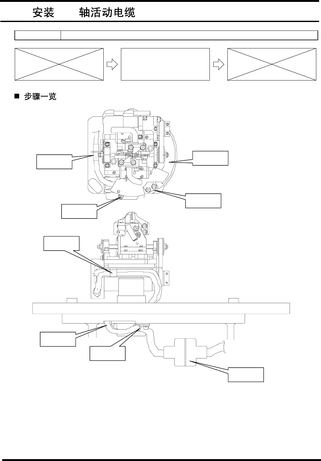 AVK3 维修 手册 7.6 安装 WA 轴活 动电缆 D77M CC-83-EH 0-B0 7.6-2 1 将活动电缆插入到下部砧座顶部的眼孔中。 2 1. 1. 将位于下部砧座板后侧的电机侧 D- 型连接器 ( -XW HE1 ) 与驱动器侧 D- 型连接器相连 接。 2. 将位于下部砧座板后侧的电机侧连接器( -XW AM1 )与驱动器侧连接器相连接。 活动 电缆 眼孔 下部 砧座的 顶部 电机 侧 D- 型连 接器( -X…