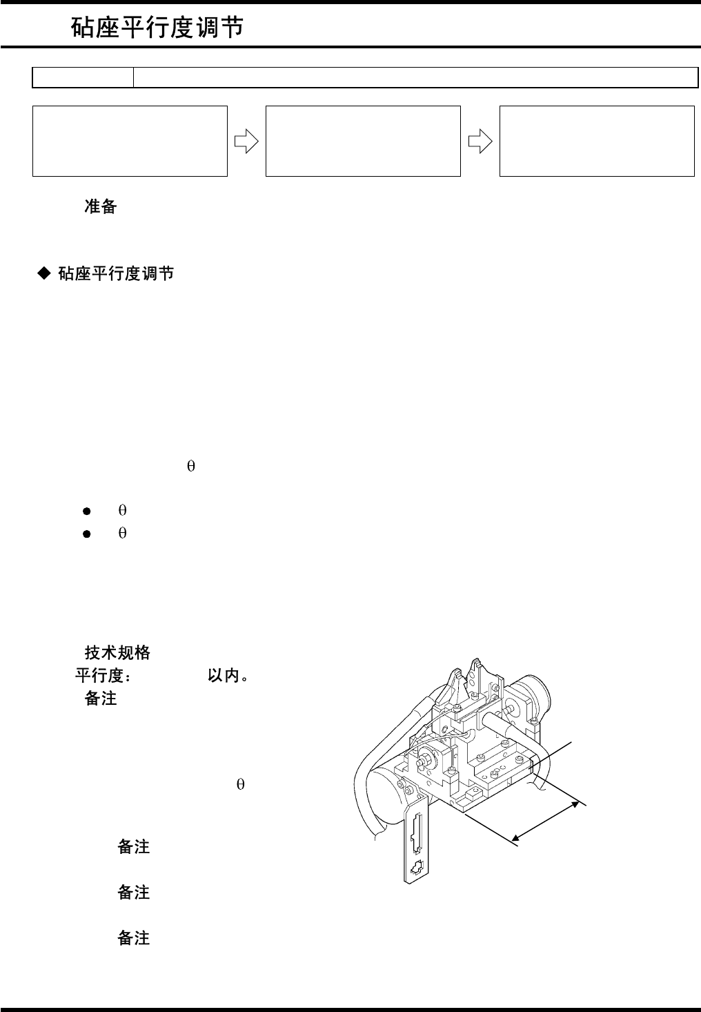 AVK3 维修 手册 7.8 砧座 高度调节 D77M CC-83-1J0 -A0 7.8-2 13. 如不处于规定的范围内,则应拧松设备下方部件、砧座驱动轴杆的下螺栓螺母,以调节高 度。 14. 再次检查导轨传送表面和砧座折弯器基座上表面之间的的高度。