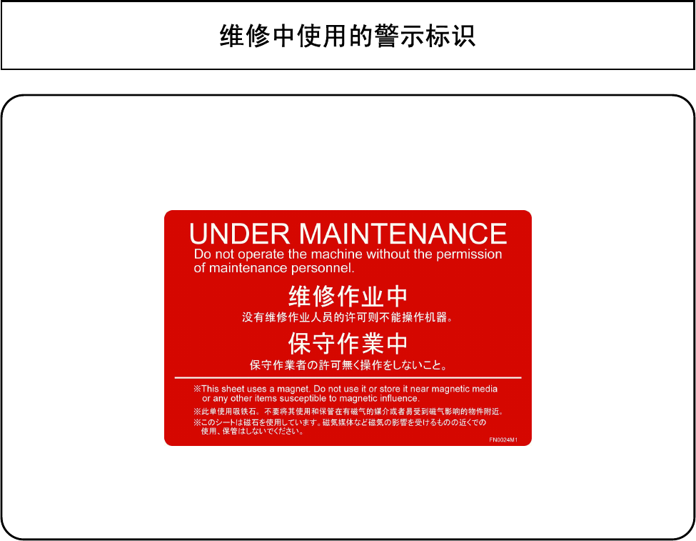 在执行维修工作之前,为了安全要将警示标识(见下图)贴在显著的位置,