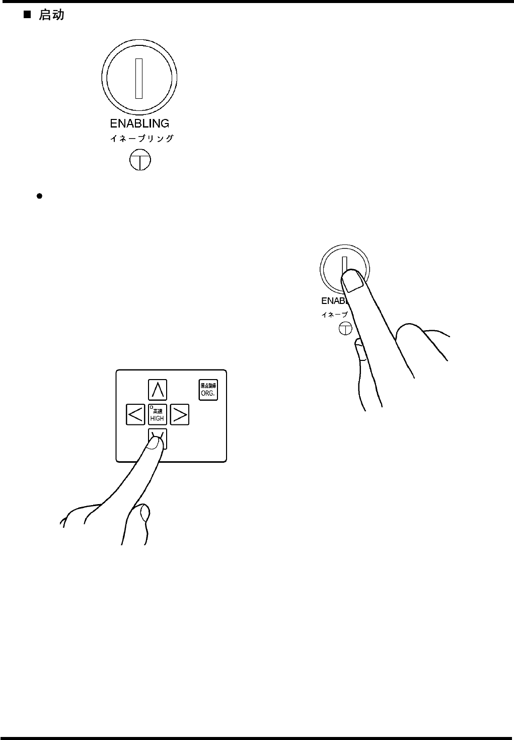 只手进行操作,另一只手按住启动开关。