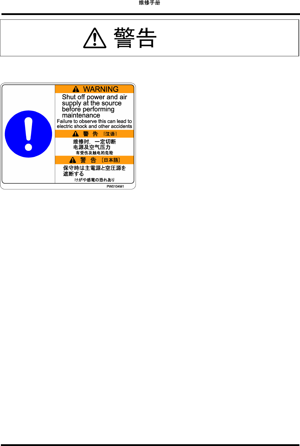 本节说明必须遵守的重要注意事项,它有助于操作者在修理时避免可能发生的意外事故