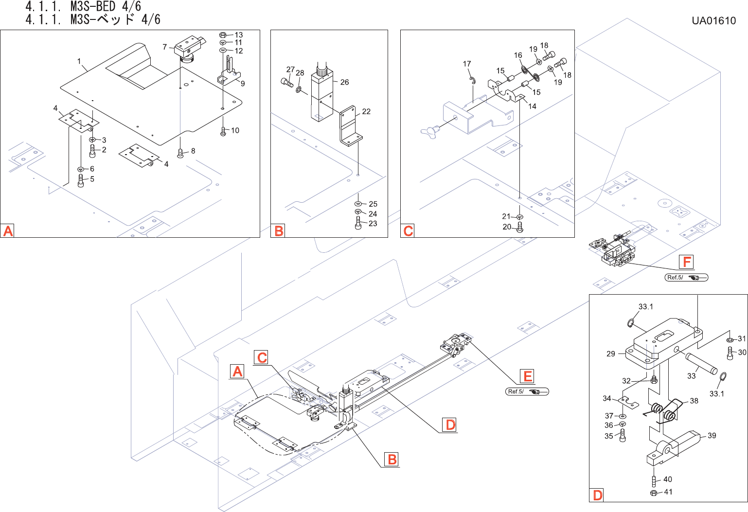 4.1.1.M3S-BED4/6 4.1.1 .M3S -ベッド 4/6 UA01610 No. Drg.No.&CodeNo. Q TY Description Rating Materials Remarks 番号 図番 &コード 番号 個数 品名 規格 材質 備考 1 PB12685 1 COVER,LOWER カバー 下 FE 2 H5274A 4 B OLT,HEXSOCKET ボル…