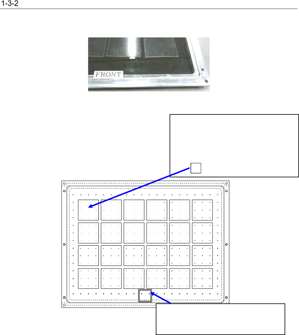 FCS 使用说明书 1-8 测定的准备 (1) 模具基板的方向 在实施 FCS 时,请设置模具 基板 使“ Fron t 片”总在 前面 、表面位 置 处。 图 1-5 前侧片 (2) 粘贴标签与硅胶片 的粘贴 将粘 贴标签 按照下图所示粘贴至 玻璃模具基板 。 图 1-6 粘 贴标签 与硅胶片 的位置 除去最外圈, 对 216 点( 12×18 )标 记 ,请 按照每 9 点( 3×3 ) 标记 上均等地粘贴 1 片 粘贴标签(□ 4…