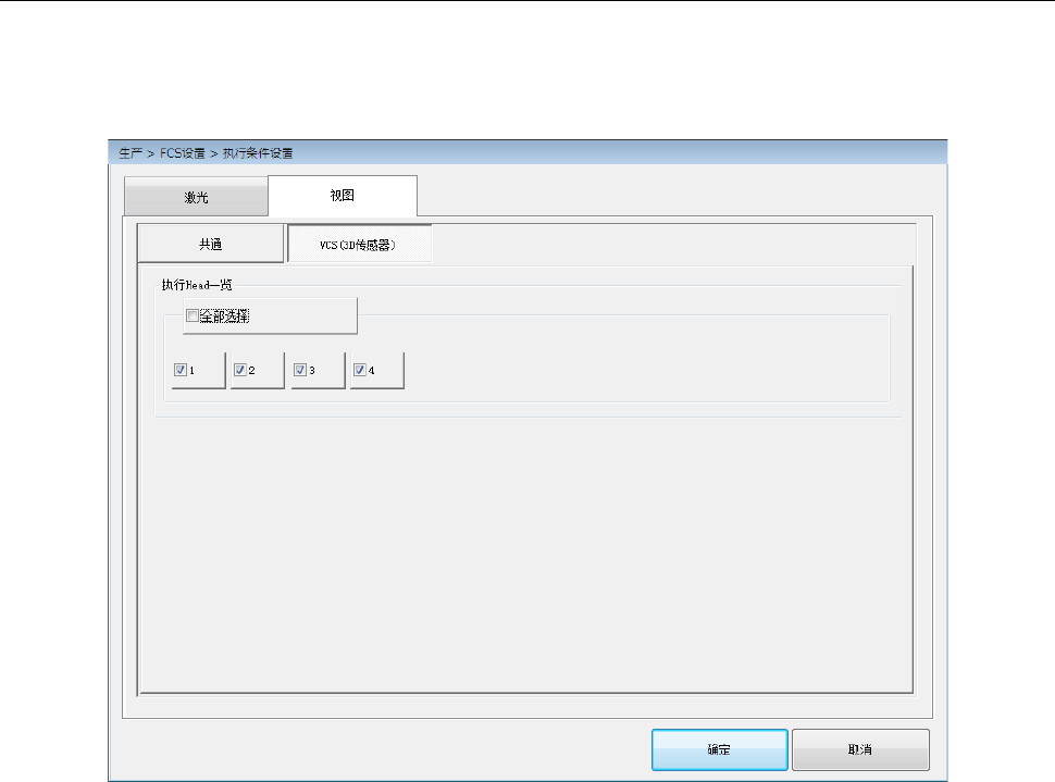 FCS 使用说明书 2-7 2-1-3-2-2 VCS ( 3D 传感器 ) 页面 指定 执行 3D 传 感器 FCS 的 H ead 。 对勾选 Head ,执行 使用 3D 传感器的 视图生产 。 图 2-6 FCS 设置 ( 视图 VCS ( 3D 传感器 ) ) 画面
