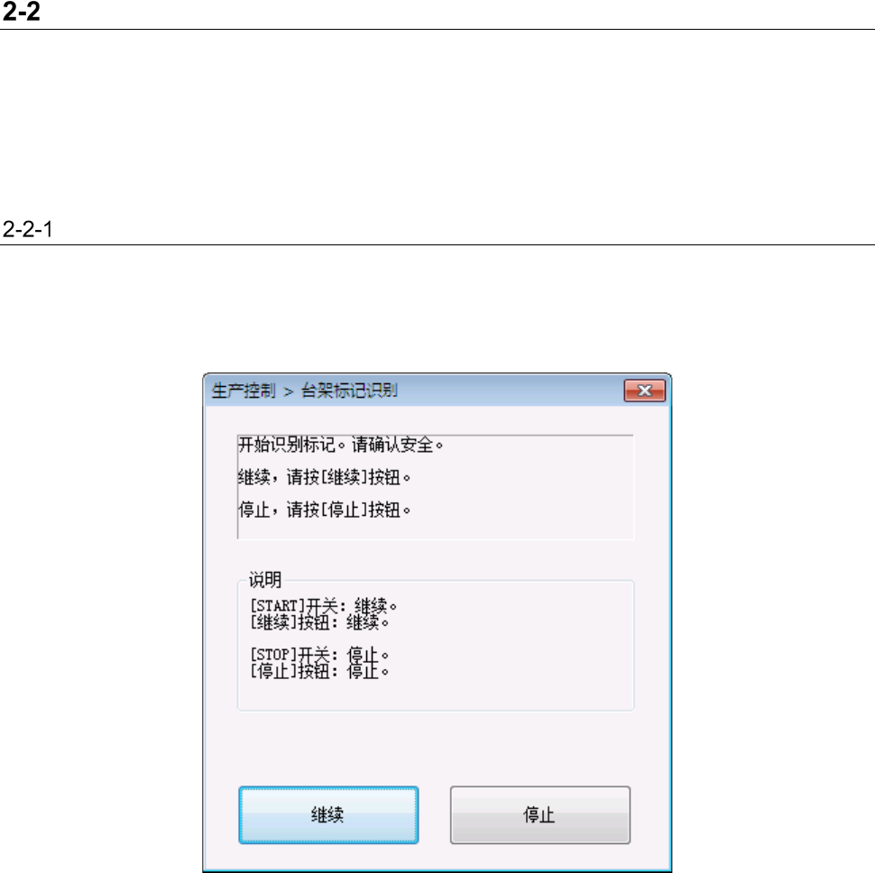 继续时请按下继续按钮,或者按下操作画面上的[START]开关。不执行FCS生产时请按下停止按钮,