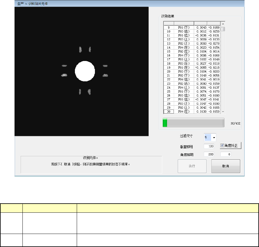 按下[再识别贴片元件]按钮显示 [识别贴片元件] 画面时,按下[执行] 按钮,开始识别贴片元件动作。