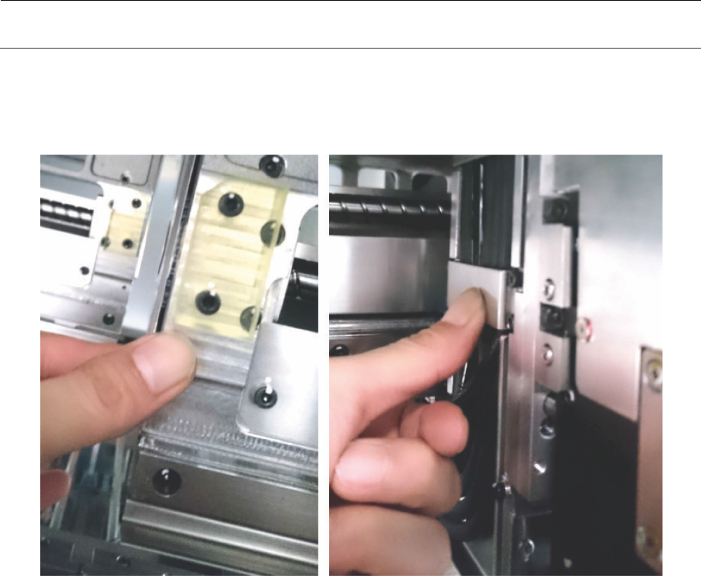 按下图所示,按住 X 轴框架(铸件)、Z 轴框架的电缆固定板金,使之移动。
