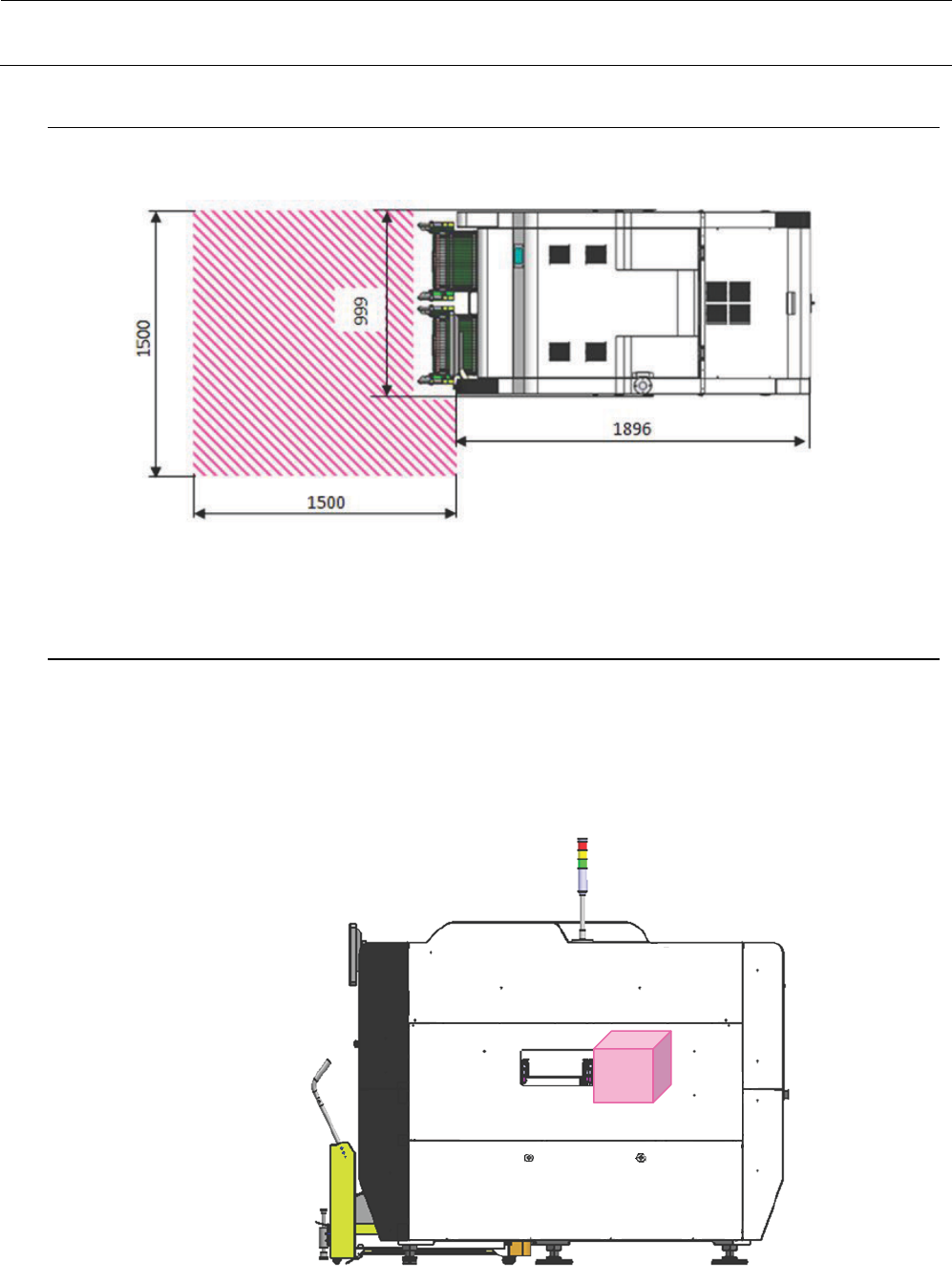 使用电动供料器及一次性更换台车时所需的作业空间如下所示。请勿在该区域内放置物品。