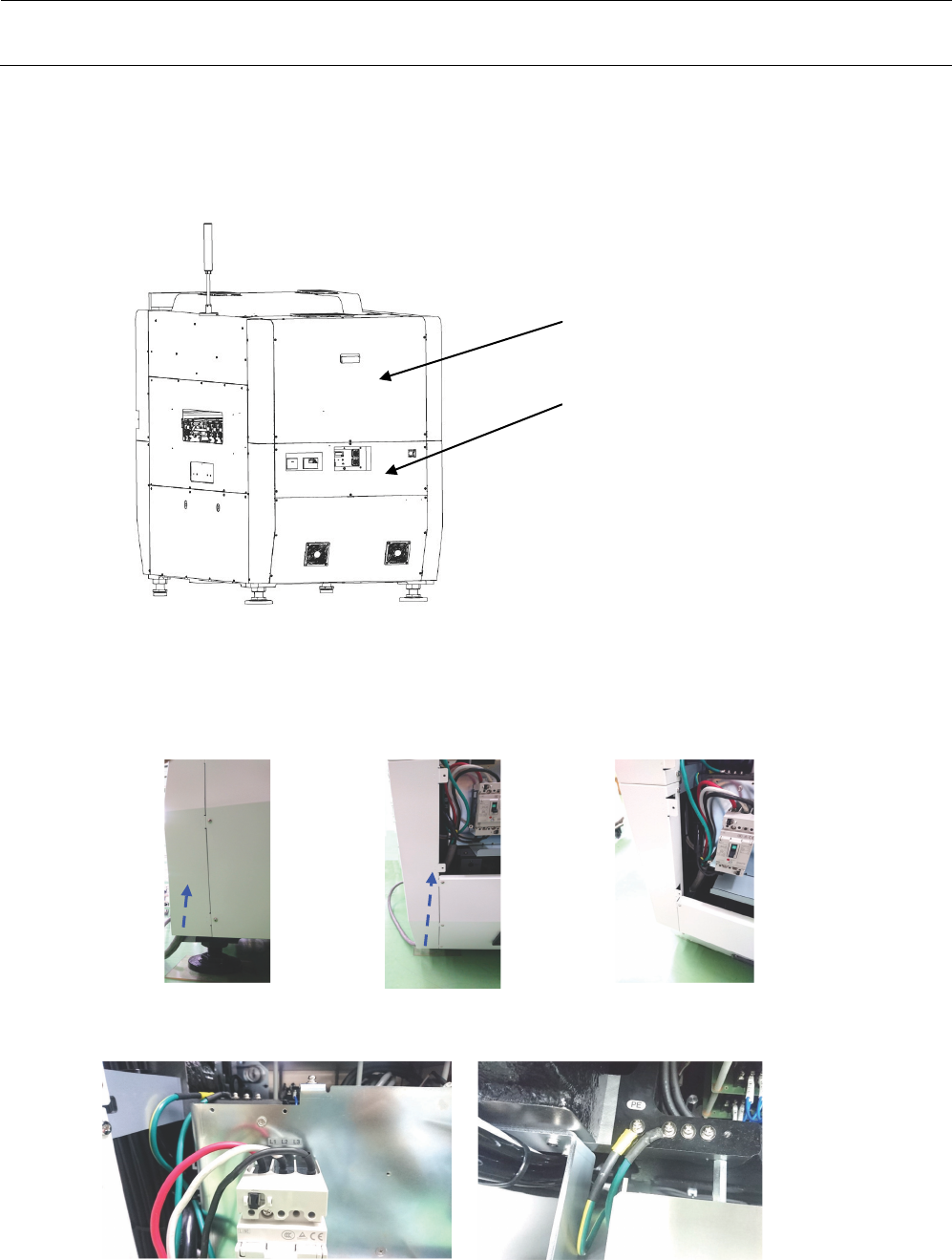 安装要领书 16 7. 请用附带的束线 箍 (HX0023 3000A) 按下 图所示将工厂 侧一次电源缆线 予以固定。 8. 安装本机的断路 器护罩。 9. 打开工厂侧一次 电源。 10. 接通本机的主断 路器。 关于电源的相序 警告 请将本机进行正 向配线。 连接了工厂侧一 次电源电缆的地 线时,请务必 确认本机电源的 相 序。 相序检查作业过 程中的电源接通 时间请设定为 最短时间。 用束 线箍固定