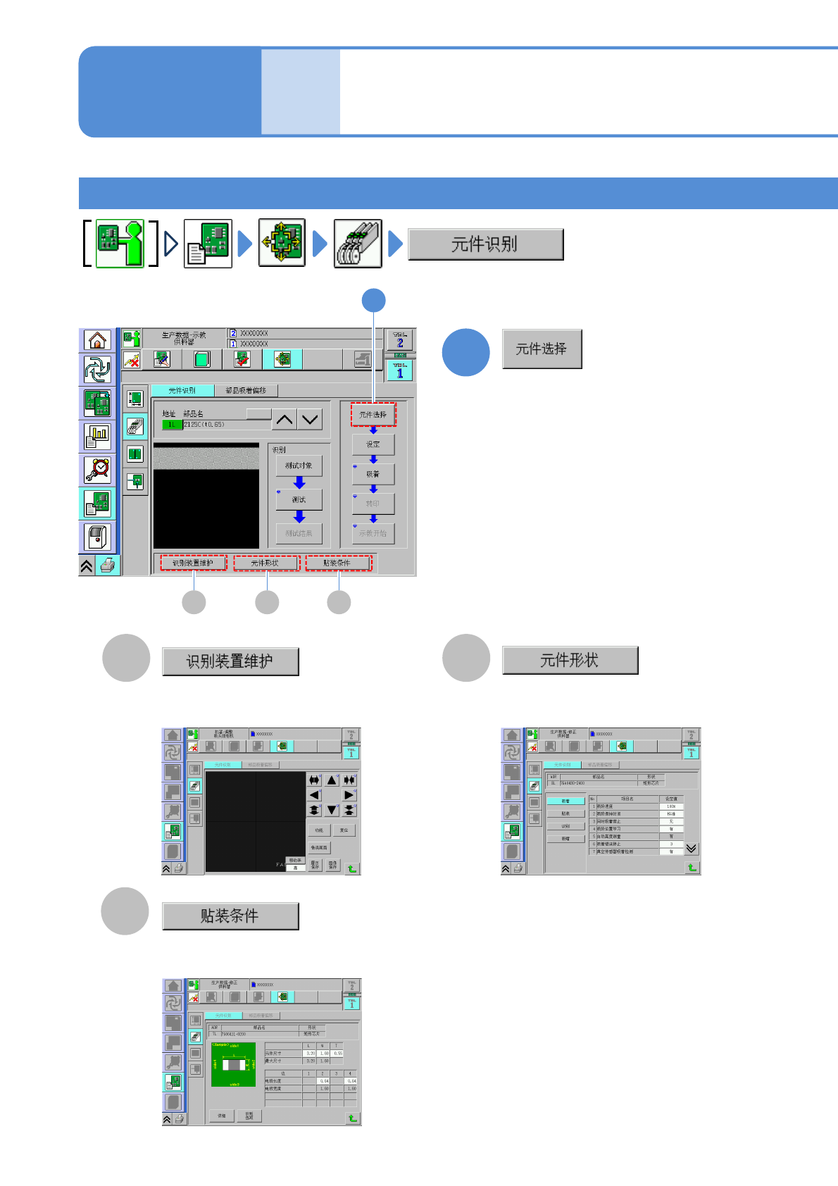 NPM-D3 EJM6DC-MB-06O-06 生产数据 校正 元件识别校正 1 1 1 可以输入和修改贴装条件的数据。 ( → P.6-1-9) C A B C A B 可以输入和修改元件形状的数据。 ( → P.6-1-8) 可以确认所有的识别处理动作。 ( → P.7 -2-11 ) 元件识别校正 2 显示选择识别元件的画面。 操作篇 6-2-4 6-2-4 -3