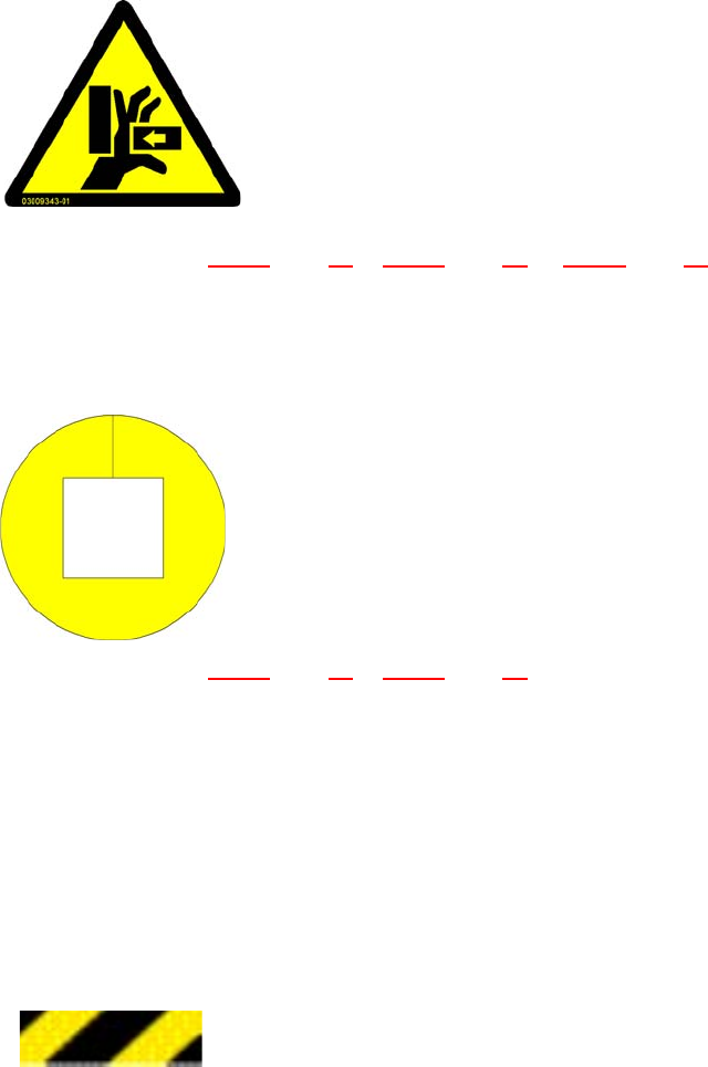 Syöttö- ja poistokuljettimen yläpuolelle koneen sisustassa on kiinnitetty musta-keltainen varoitus-