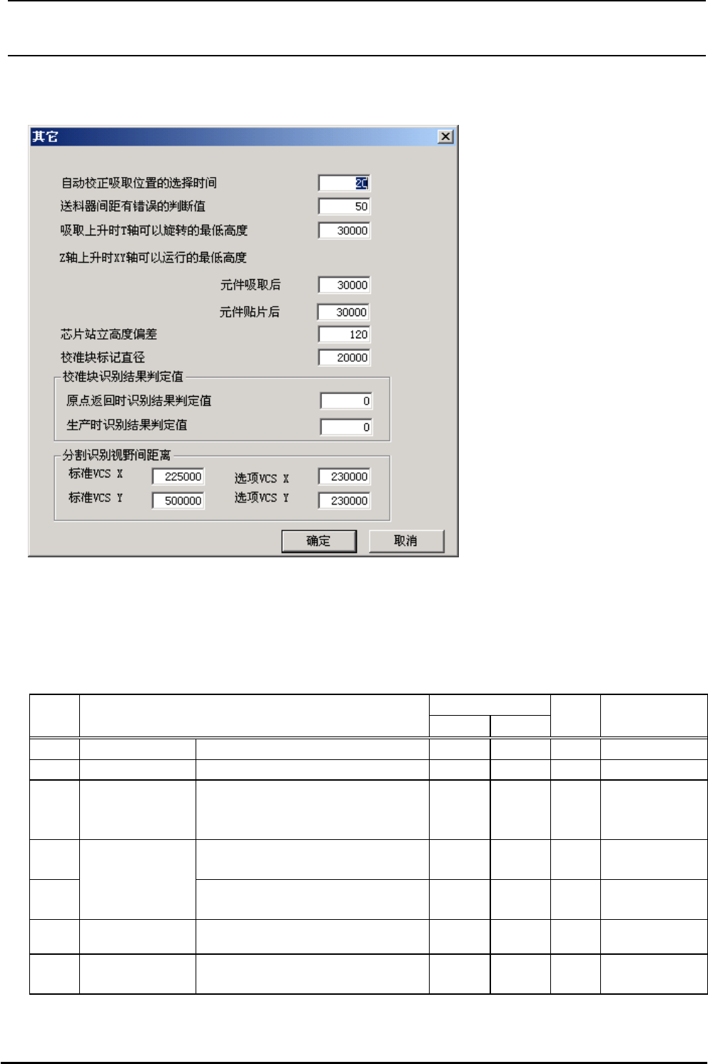 R e v 1 . 0 0 机械控制参数 4-102 (2) 设定项目 输入范围 № 项目 最小值 最大值 单 位 备考 1 定中心方式 0 3 0:激光 1:视觉 2,3:备用 ※1 2 用户设置有效/无效 0:无效 1:有效(初始值) ※2 3 照明的种类 255: 用户定义 (初始值) 4 OCC 的选择 0:L_OCC 1:R_OCC 5 照明模式有效/无效 0:无效 1:有效 ※3 6 模式 0:垂直照明 1:角度照明 7 编…