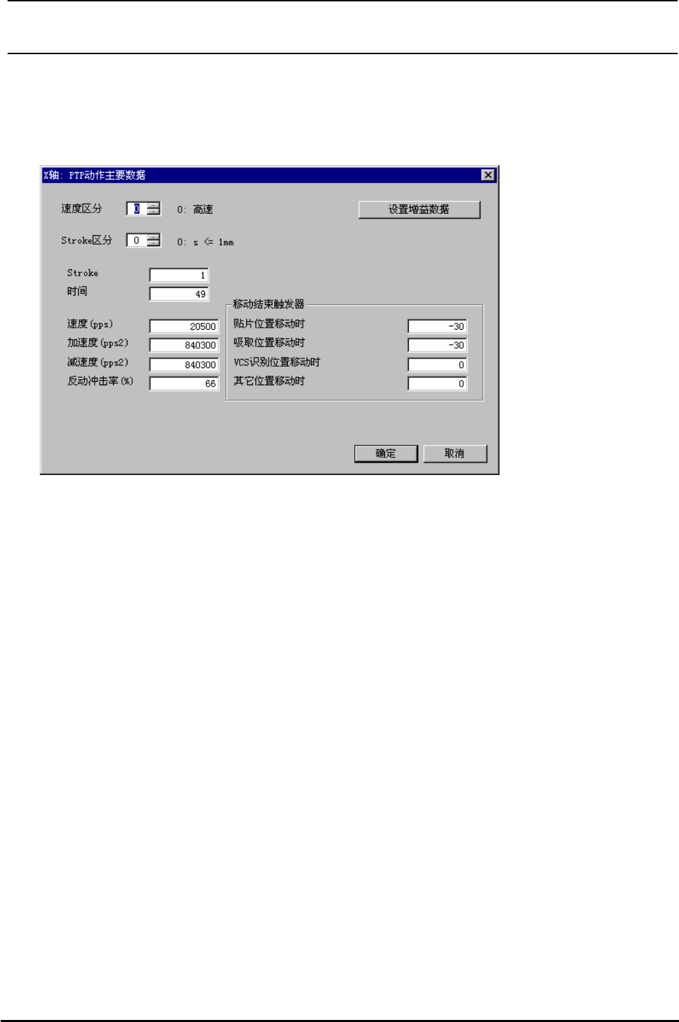 注 1) 选择了[设置增益数据]按键之后,增益数据设定画